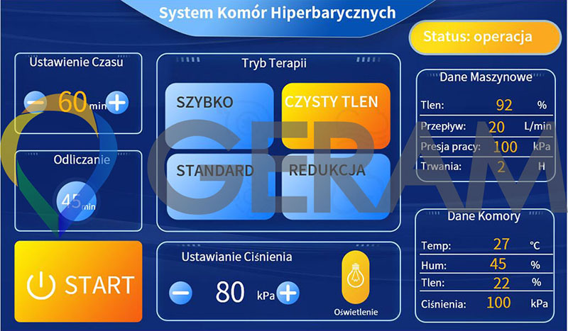 Nasze komory hiperbaryczne są bardzo przyjazne dla użytkowników, nie wymagają skomplikowanych operacji. Po zamknięciu drzwi przez użytkownika i zakończeniu ustawiania kilku parametrów na wyświetlaczu, system automatycznie zwiększy ciśnienie do poziomu określonego przez użytkownika. Po zakończeniu zabiegu system automatycznie się rozhermetyzuje, a użytkownik może opuścić komorę. Podczas procesów zwiększania i obniżania ciśnienia zmieniają się one bardzo płynnie i powoli, aby uniknąć dyskomfortu ze strony użytkownika.